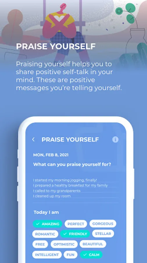 Praising yourself you helps to shape positive self-talk in your mind, these are the positive messages that you are telling yourself.