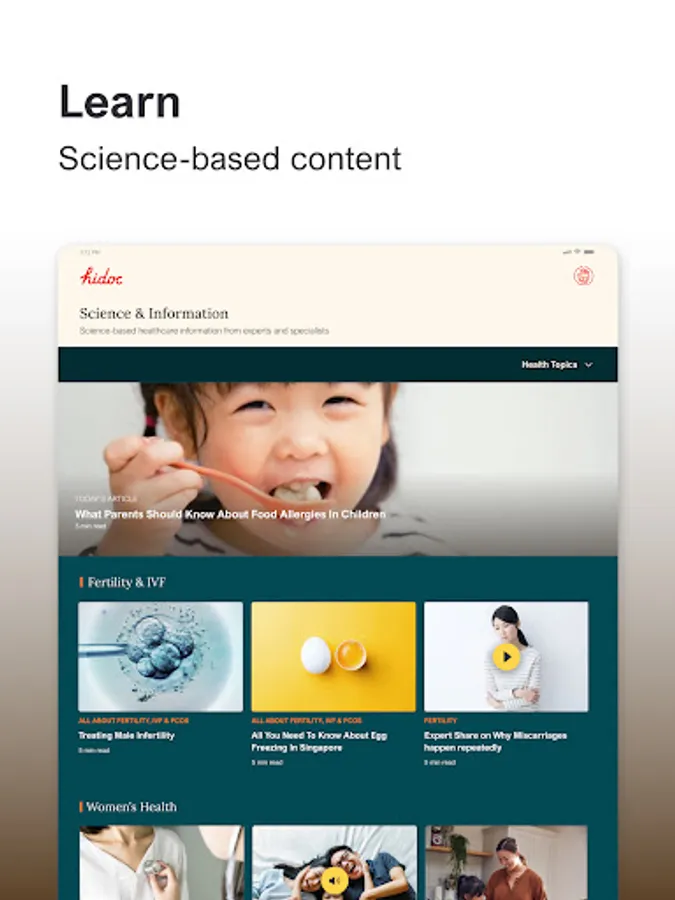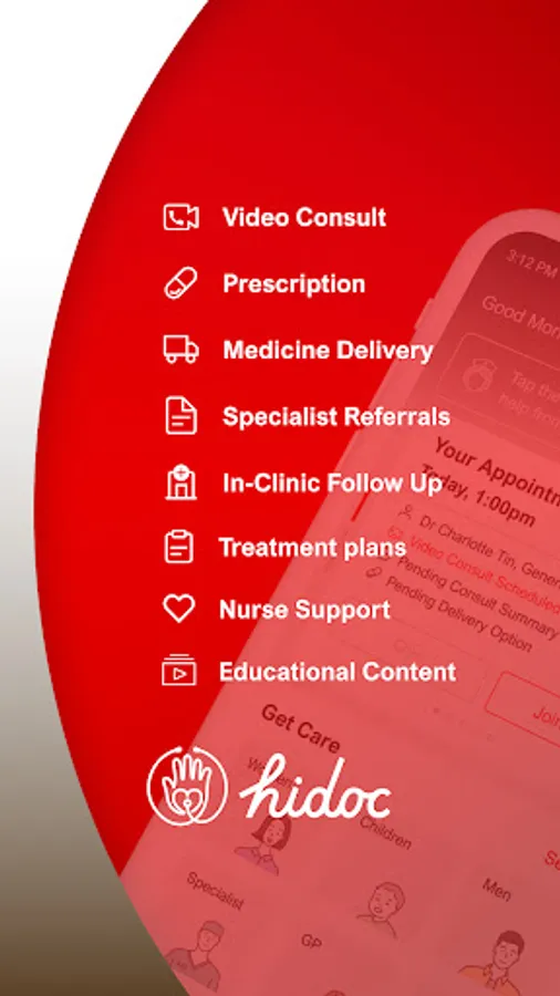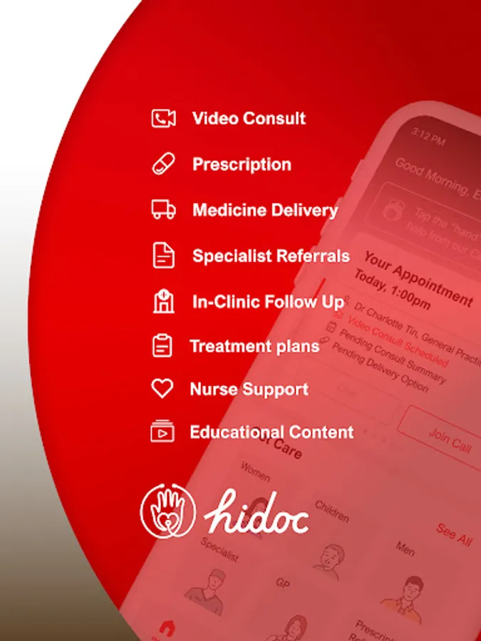 Hidoc is Singapore’s most comprehensive telehealth app covering 100+ healthcare specialists, over 25 medical fields.