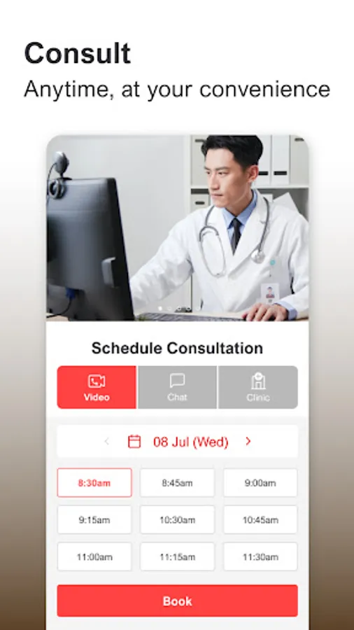 1. Select your preferred specialist/medical expert or indicate your symptoms for us to recommend the right health provider for you.