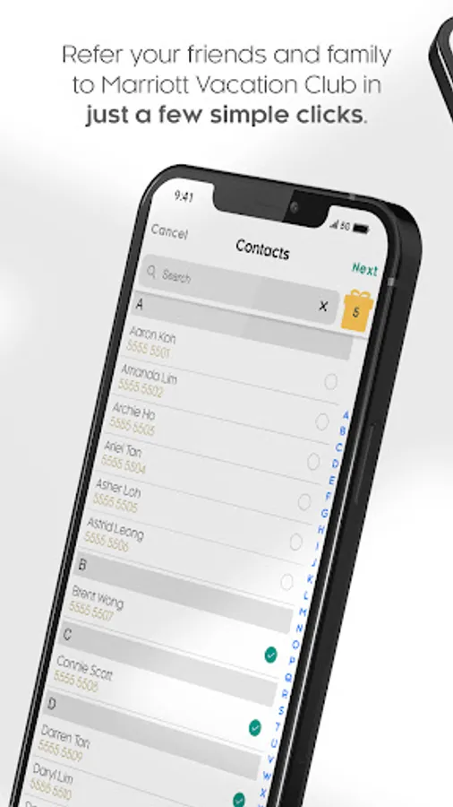 Select – Send a message to those friends and family from your contacts who you feel would enjoy Marriott Vacation Club.