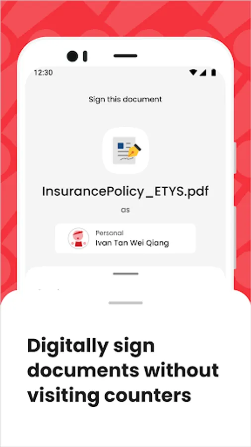 DIGITAL SIGNING: Sign documents and contracts easily and securely with your Singpass app, removing the need for physical presence and paper-based signing.