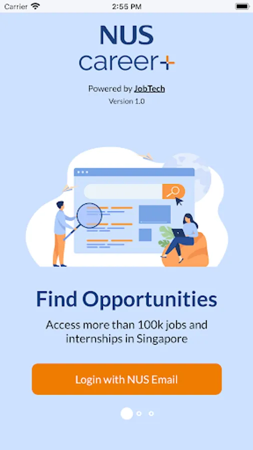 The NUS career+ is a mobile application jointly designed and developed by the National University of Singapore (NUS) and JobTech Private Limited. The team behind the application’s development consists of 8 NUS alumni from different cohorts and faculties and was guided by the head of NUS School of Computing.