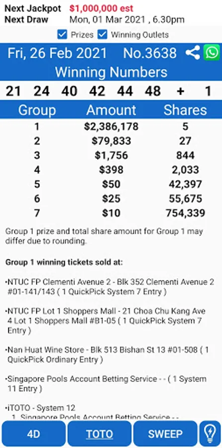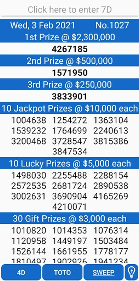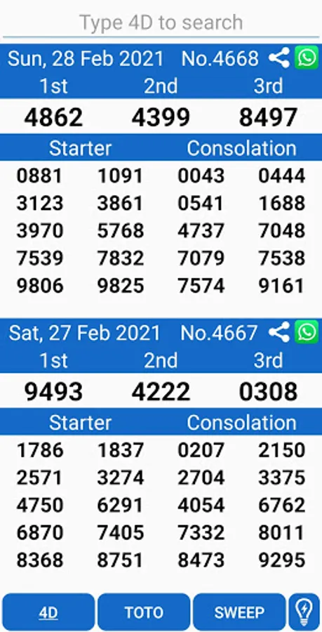 Singapore 4D, TOTO and SWEEP Results. This app is for Singapore users which includes 4D, TOTO and SWEEP last and past results.