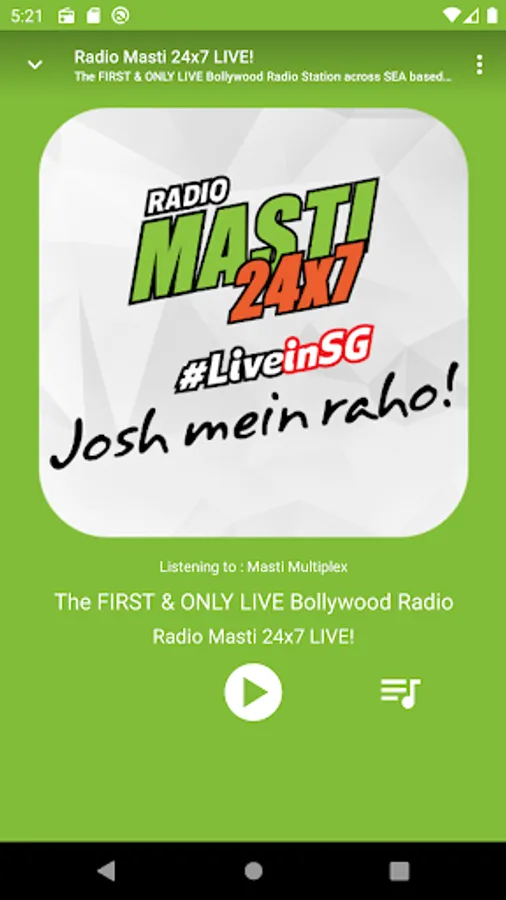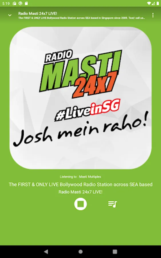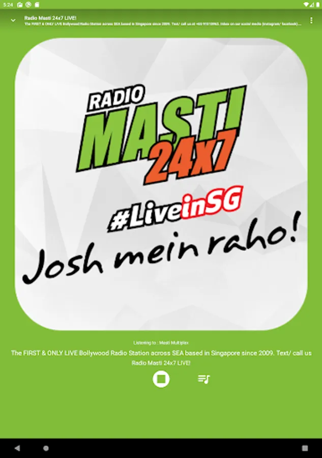 Radio Masti 24x7, formerly known as Radio Masti 96.3FM since 2009 (XFM Mediacorp) is the first Hindi LIVE 24x7 radio-on-Apps in Singapore.