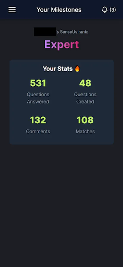 - Answer questions - the core of SenseUs. Just click on the answer that best represents you, or skip the question if you are not comfortable answering/want to come back later.