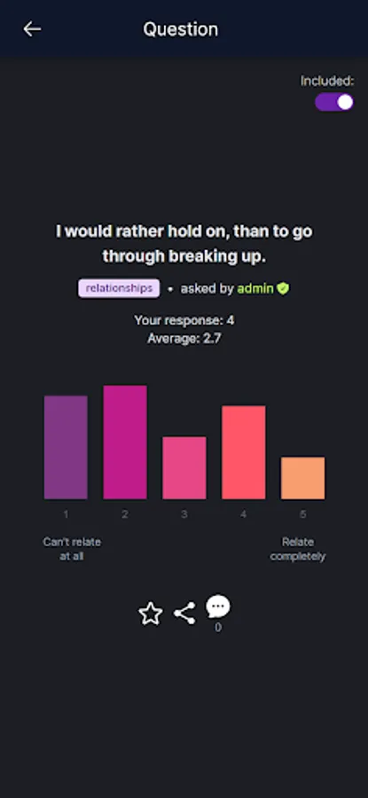 - View the Results. Once you've answered a question, you can view the results of the page to: see how other users have responded, find out who created the question, access additional context/information provided by the creator, comment your thoughts, and share the question directly with your friends