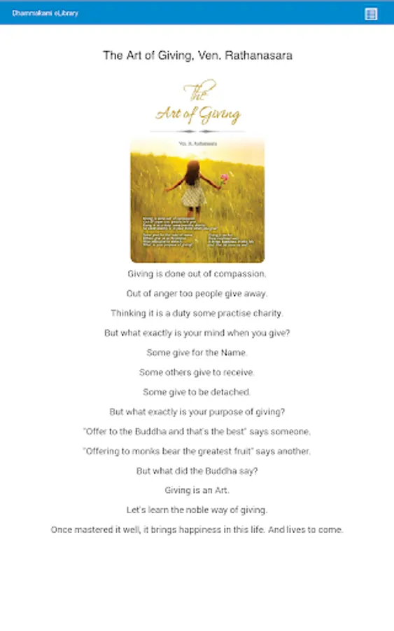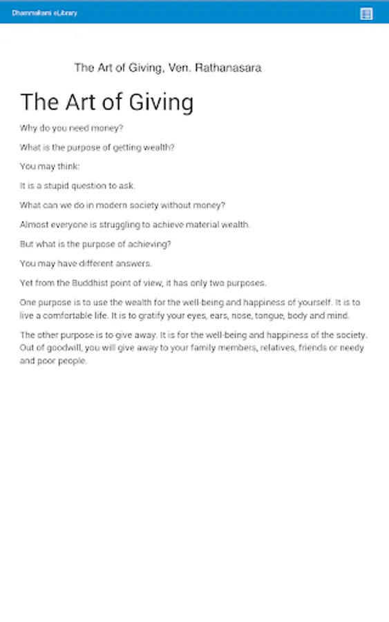 This application holds resources related to Buddhism. Currently, it consists of shelves for eBooks and Links. The number of shelves and resources within each shelf will increase gradually in future releases.