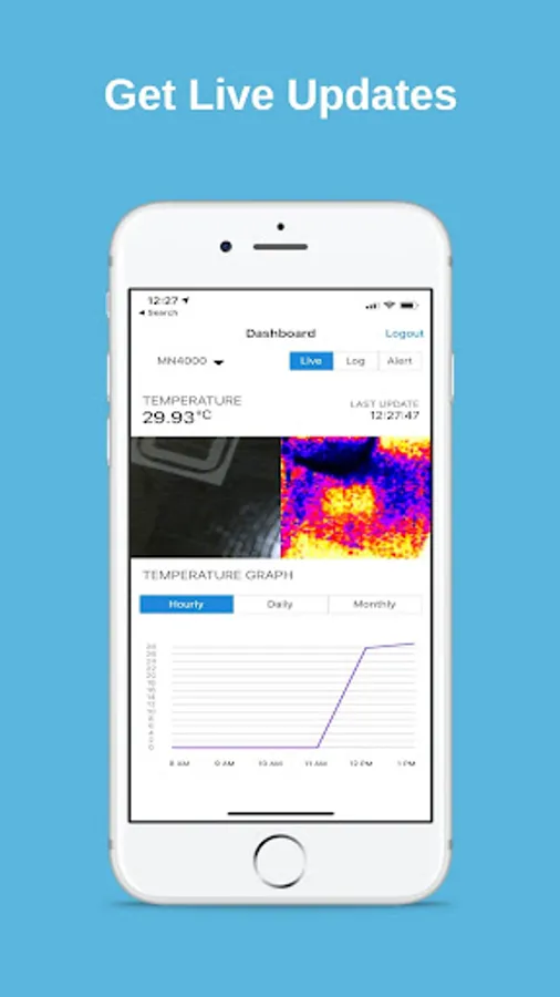 Stream the camera feed in LIVE and view the thermal image together with temperature.