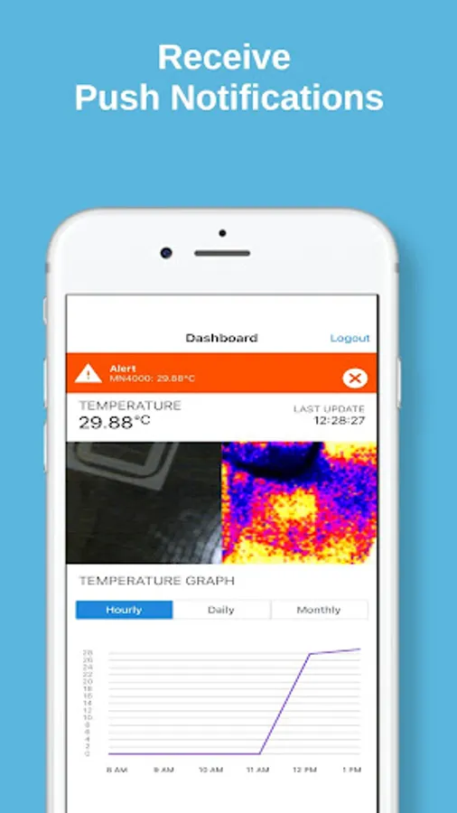 Set and get live alerts from your mobile phone when your thermal camera CorDEX MN4000 and MN4100 exceeds the threshold.