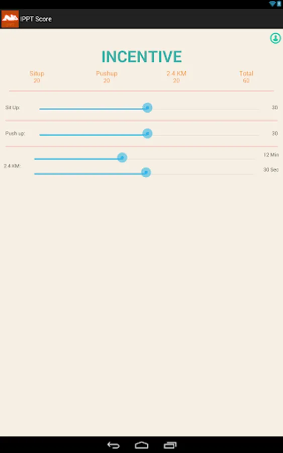 IPPT Score is an app that helps you to calculate the total points and the award type that you have achieved based on the new IPPT scoring system.