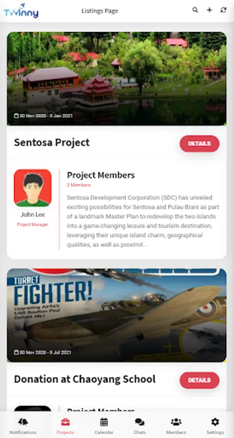 Events created will be linked to Twinny’s calendar. Receive reminders and notifications on events date and project’s datelines.