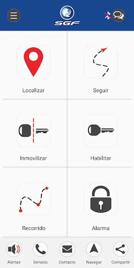 * Alerts: Configure alerts that inform On or Off of your vehicle, Speed Excess, Battery Disconnection, * Alarm Activation, * Alarm Activation by Strike.