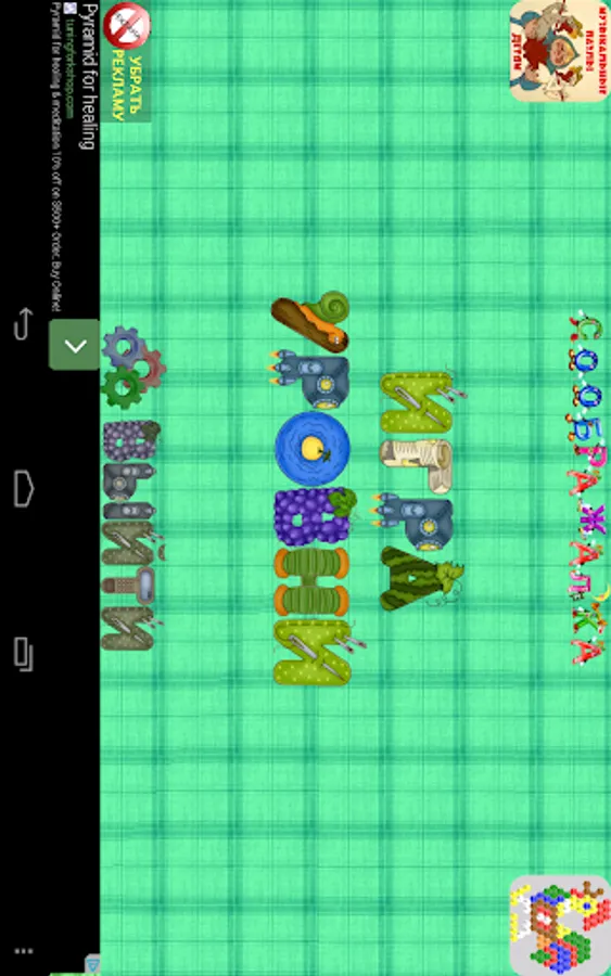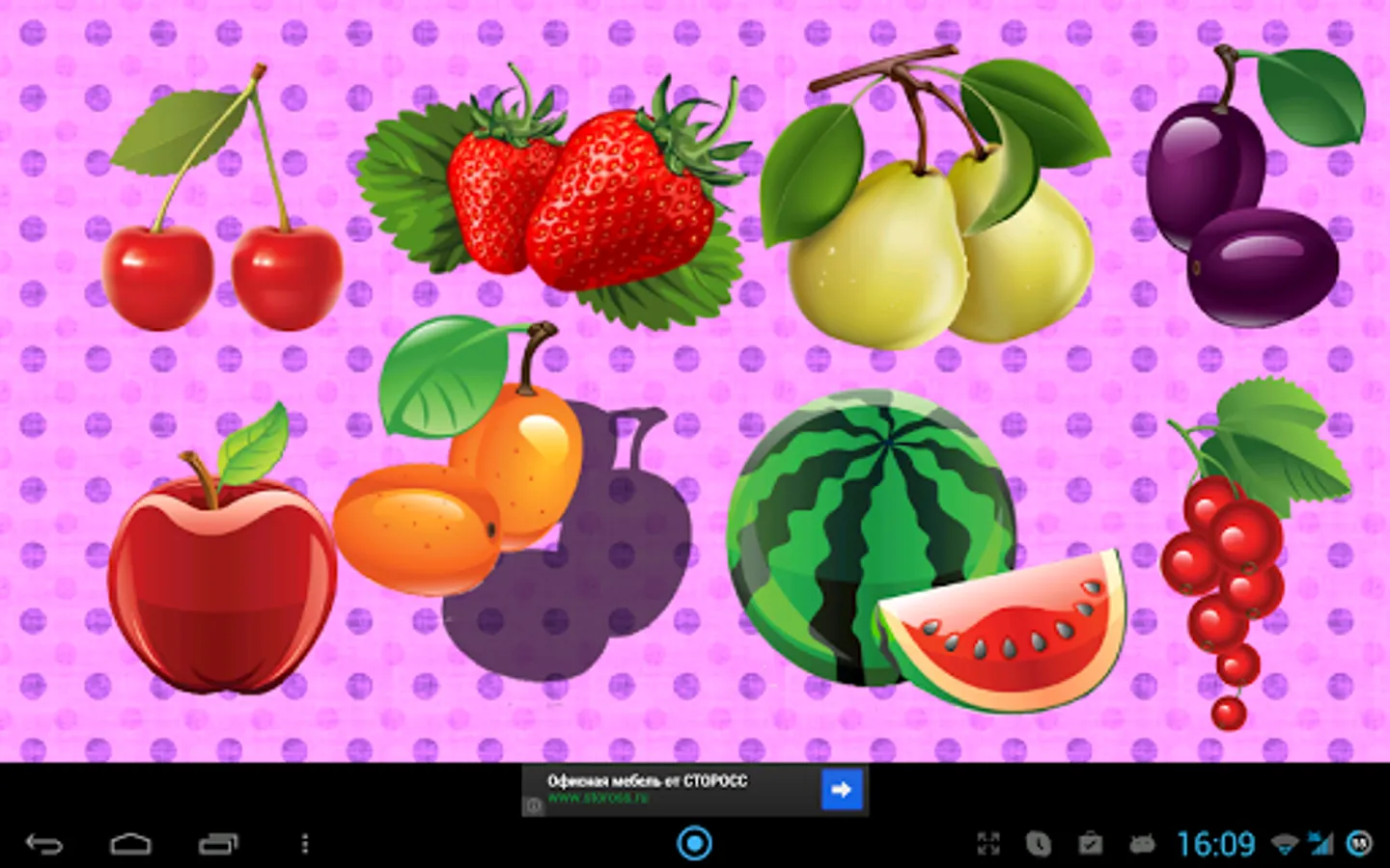 This exciting game will allow your child not only to learn colors, geometric shapes, numbers and letters, but also give an opportunity to think logically. Tasks in the "soobrazhalki" clear enough to the child lay pyramid, arrange dolls in places, spread fruit, find the tangled shadows zaek, decorate the Christmas tree. All objects are clear and close to the child, originally prevalent in our culture: if the vegetables, then Ogura, tomatoes, potatoes, if the toys, the dolls, the pyramid-machine.