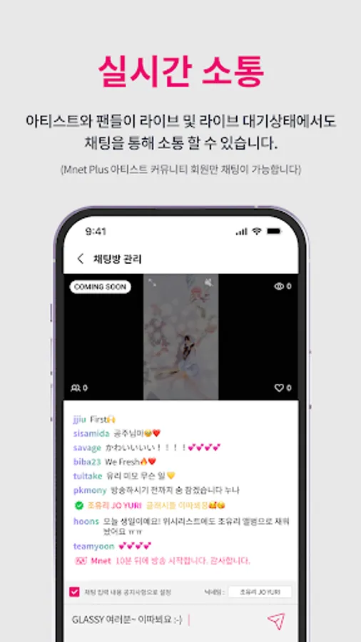 * Communicate and share your daily life with fans who joined Mnet Plus Artist Live