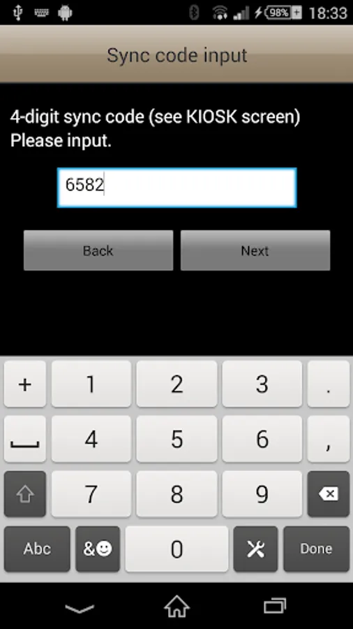 6. Please press "continue" on the kiosk and wait until a 4-digit sync code is displayed on the next screen.