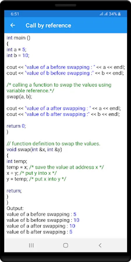 You cannot run or execute programs with this app. The output is already tested and displayed for your reference. Thank You for understanding.