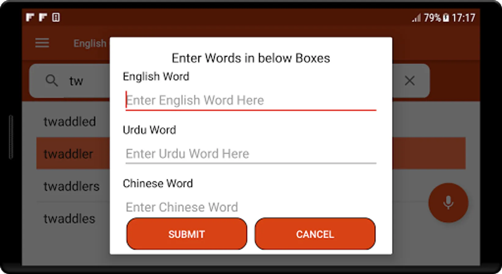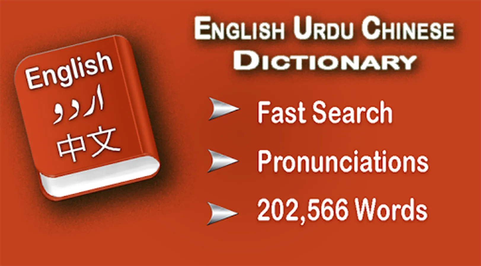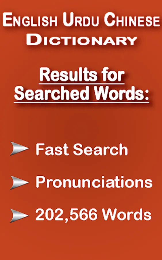 Its contain word database with different English Chinese and Urdu words in Alphabetical order which are correct with thesaurus. All of you can use it as English to Chinese and Chinese to English dictionary.