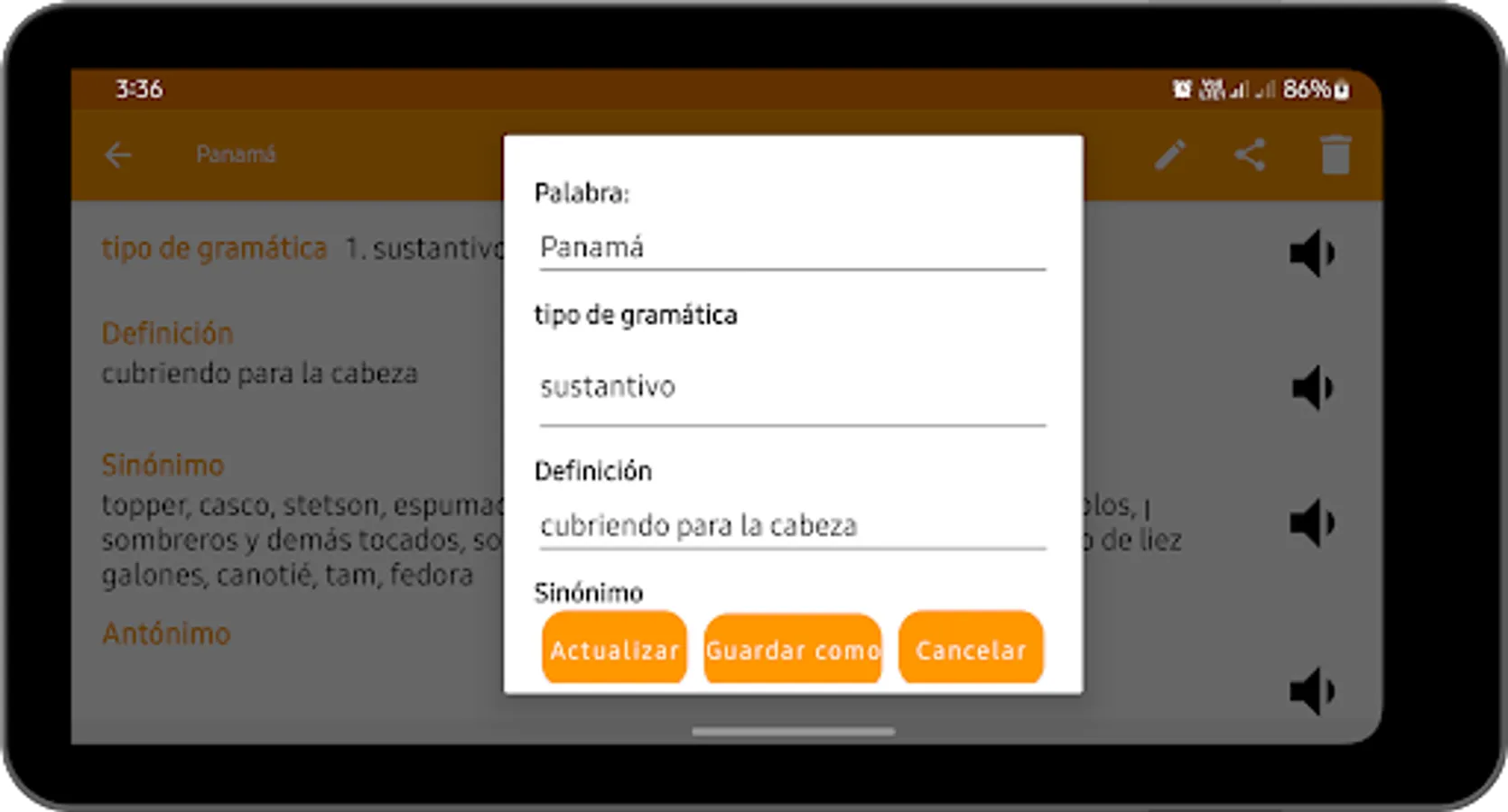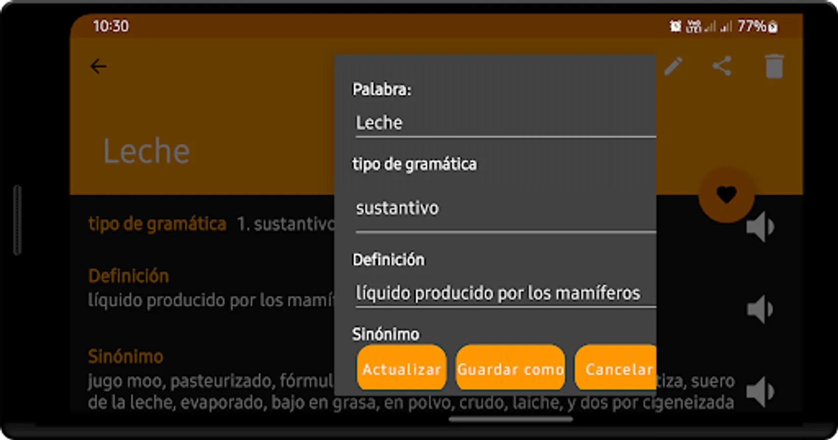 Find meanings, look for word thesaurus, learn spelling, text scanning, study grammar, write thesis and practice pronunciation; all within Spanish Thesaurus app. Explore a host of education features designed to help you pick up new vocabulary words, including, pronunciation, adding new words are the language trends.