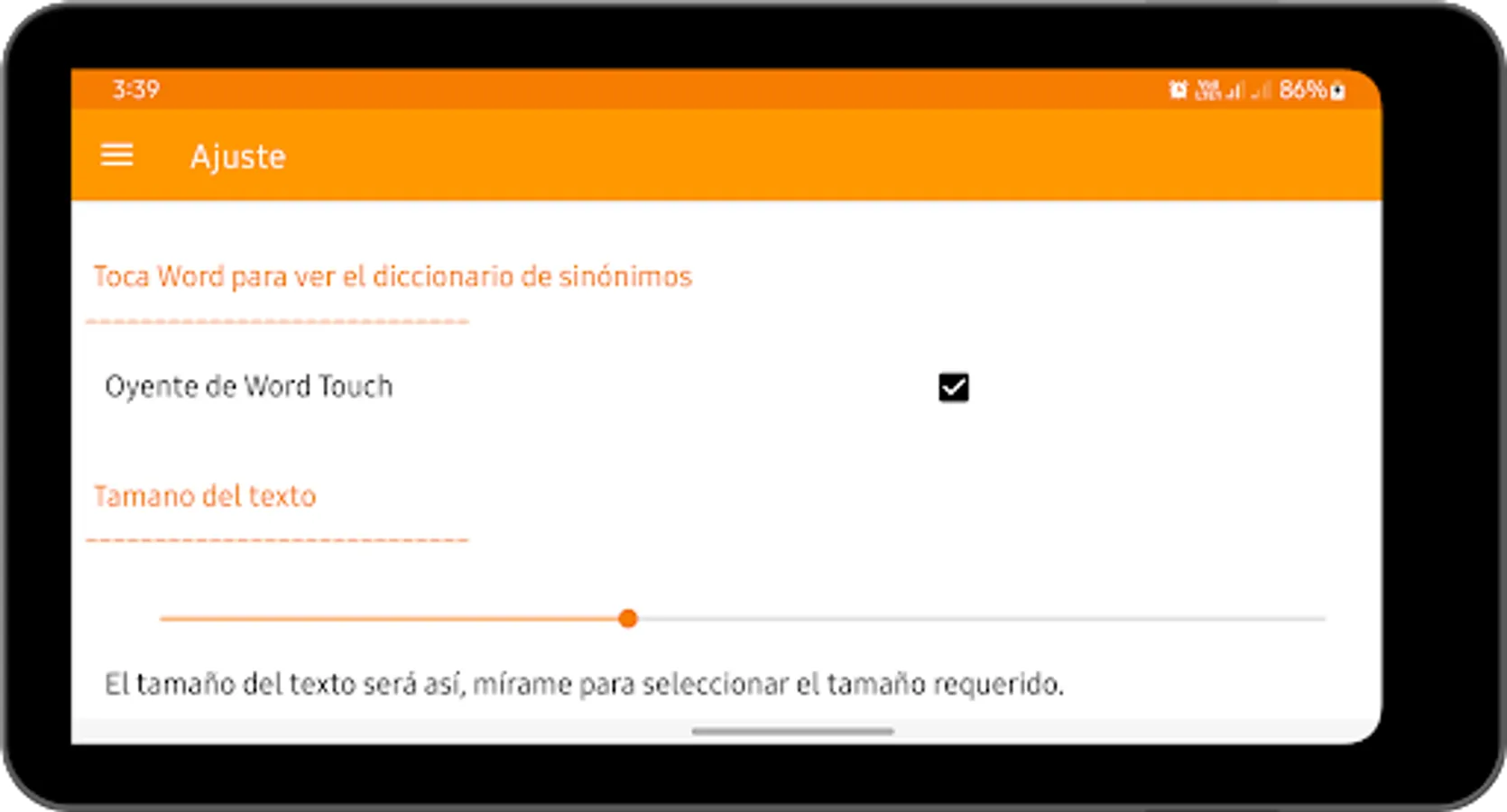 Setting tab to change Production accent, resize text, turn on word touch listener