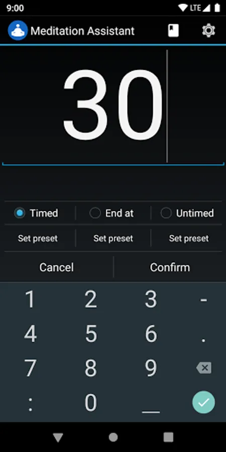This application assists with both timed (via duration or ending at a specific time) and untimed sessions, with numerous customizations, including start/interval/end sounds and device behavior. It also provides a monthly overview of your progress.