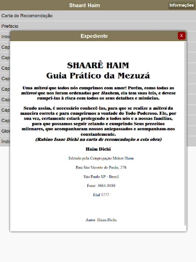 Authored by Rabbi Haim Dichi, son of Rabbi Isaac Dichi (Rav Dichi) of the Congregation Mekor Haim, the book thoroughly deals with the various practical situations regarding the placing of the mezuzah.