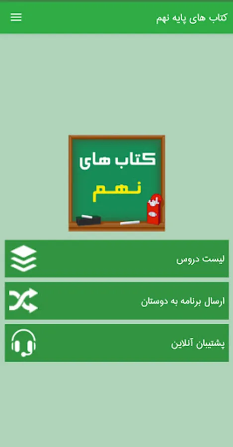 Using this program, you have access to all ninth grade textbooks and you can study in any situation, transporting textbooks is very difficult and exhausting, so with the ninth grade textbooks program, you can use it in the car, party , park, travel and anywhere else, carry all your textbooks in the form of an application and use it.