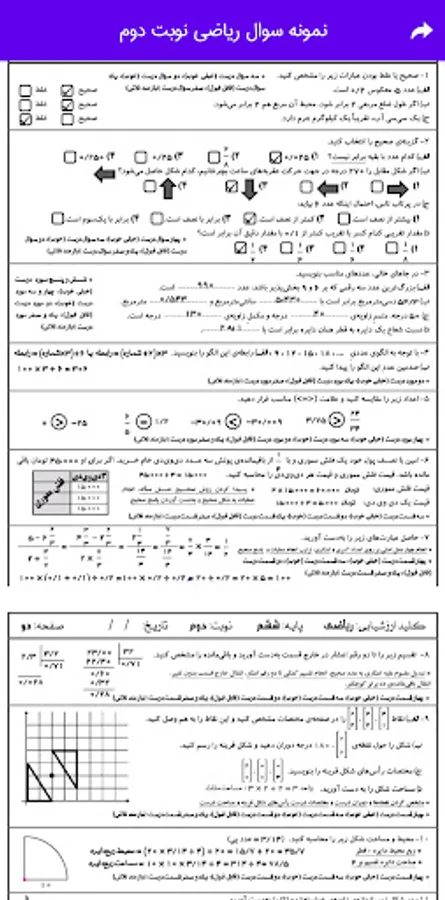 If you are in exam days and you see this page, then you know for sure how having and seeing a sample of the sixth math question affects the success of the math exam, especially if it has a complete set of sample questions from different years with answers. You have done this and we have made your work easier and we have prepared a sample program of the sixth math questions with answers that you can use on your phone.