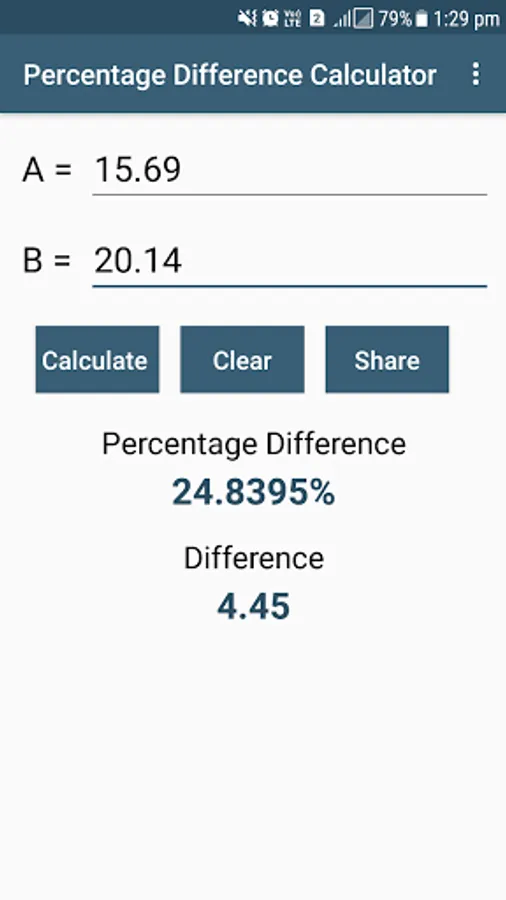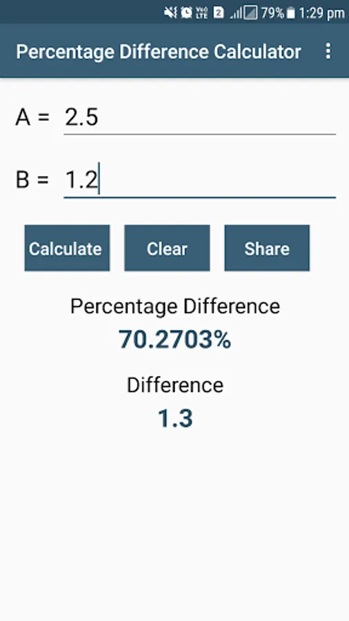 Percentage Difference Calculator is very simple app to calculate percentage difference between 2 values.