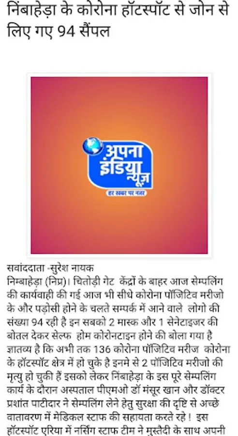 चित्तौड़गढ़ लाइव हिंदी न्यूज़ ब्रेकिंग न्यूज़ जिले की नंबर वन न्यूज़ अपना इंडिया न्यूज़ चित्तौड़गढ़ इस ऐप मैं मिलेगी आपको जिले की हर छोटी बड़ी खबरें जिले की तमाम खबरों से अपडेट रहें ऐप को डाउनलोड करें