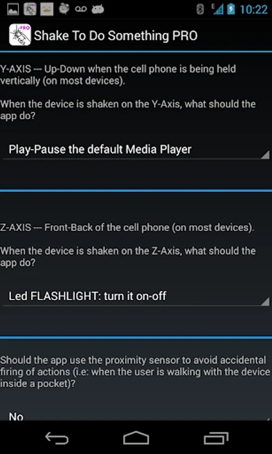 1 - you can set 3 different actions to be fired, one for every axis of movement, instead of the single one available on the FREE app.