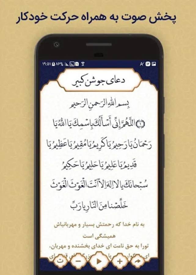 🔸امکان نمایش و حذف ترجمه فارسی دعا