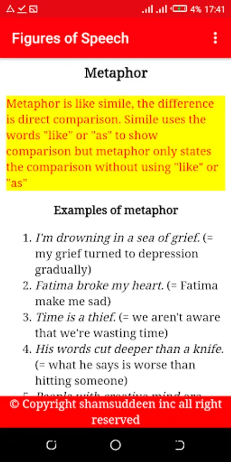This app covers the most common figures of speech or literary terms with their examples and explanations.