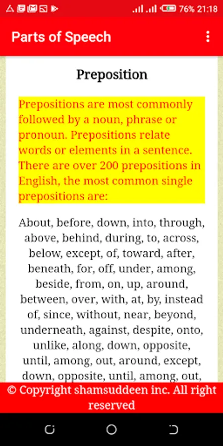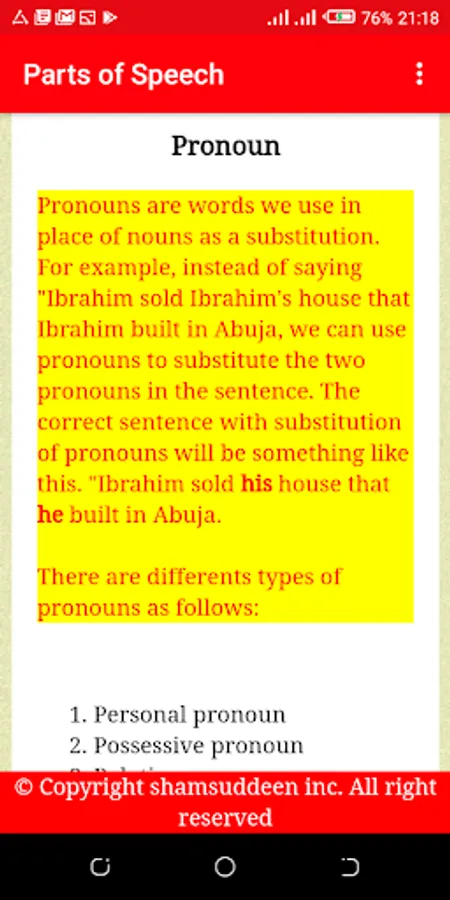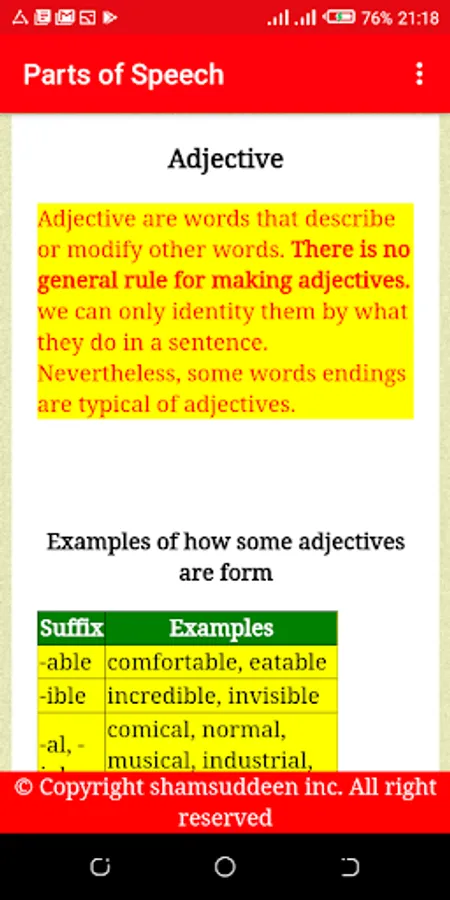 Learning English Parts of speech lessons with exercise and usage sentences where applicable ideal for English learners and their teachers.