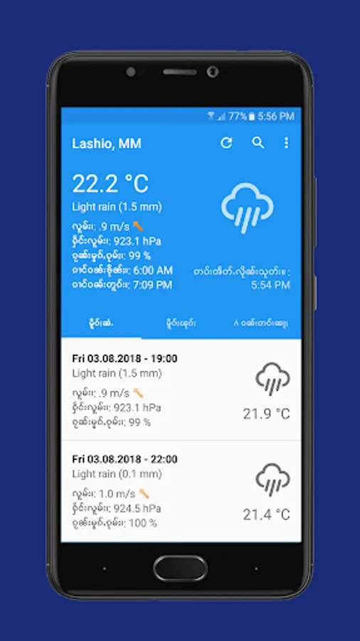 Weather App in Tai if you like this app so you can download and try to use our app. This app was built for non-profit. So that we just want someone to get daily news like a weather info all the time. Thank you for using this app and sharing.