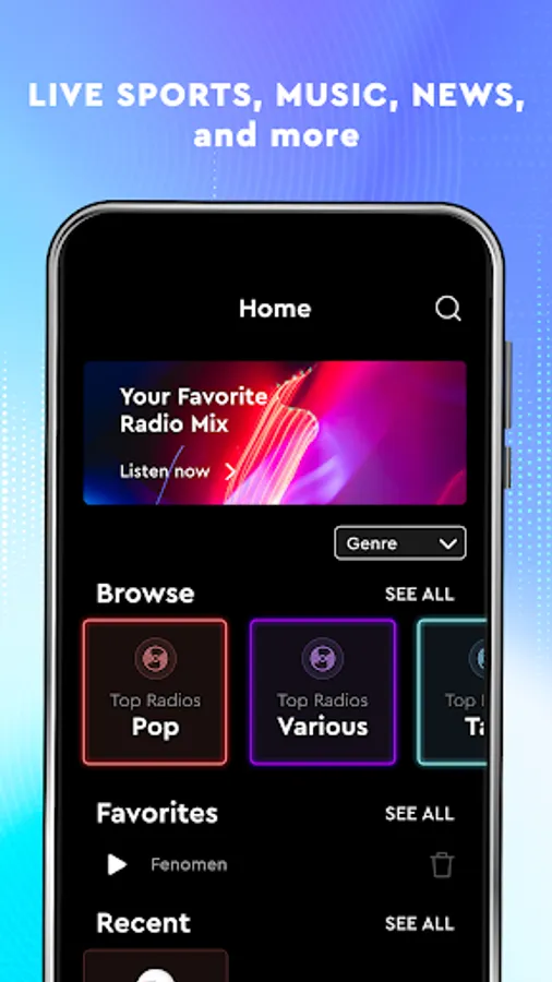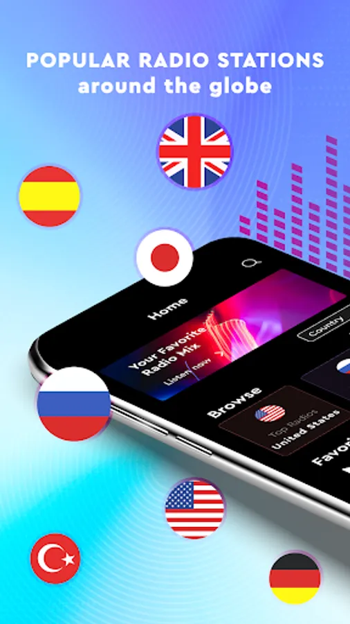 Listen to thousands of live radio stations, tune in to podcasts and create unlimited music playlists for any mood or activity in Radio: FM, Music, World Radios app