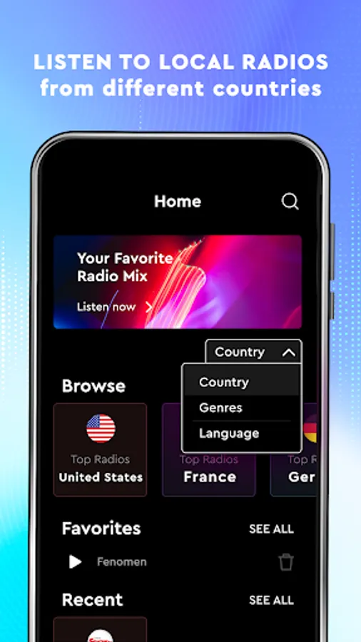 Listen to the most popular radio stations from around the world with Radio: FM, Music, World Radios app