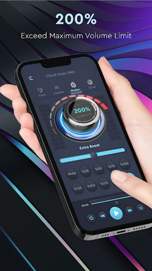 Extra Volume Bass-Booster Free app is a sound booster that safely increases the volume beyond its regular limits to deliver a rich and intense audio experience.