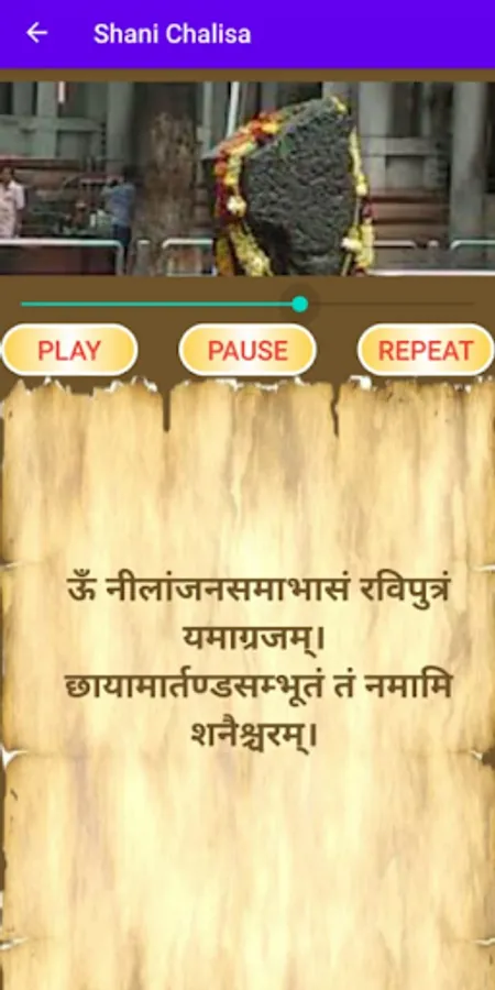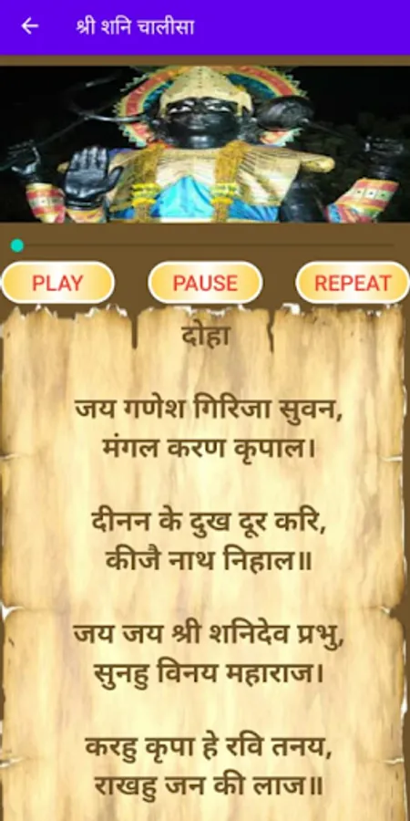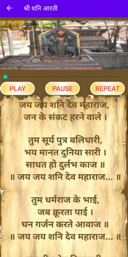 Chalisa, aarti, and mantra audio track. You can set Repetition of audio and also