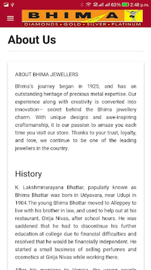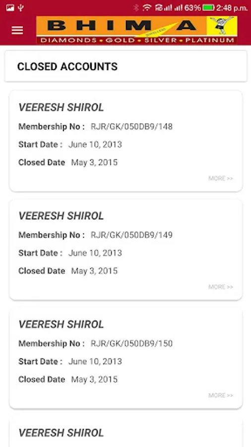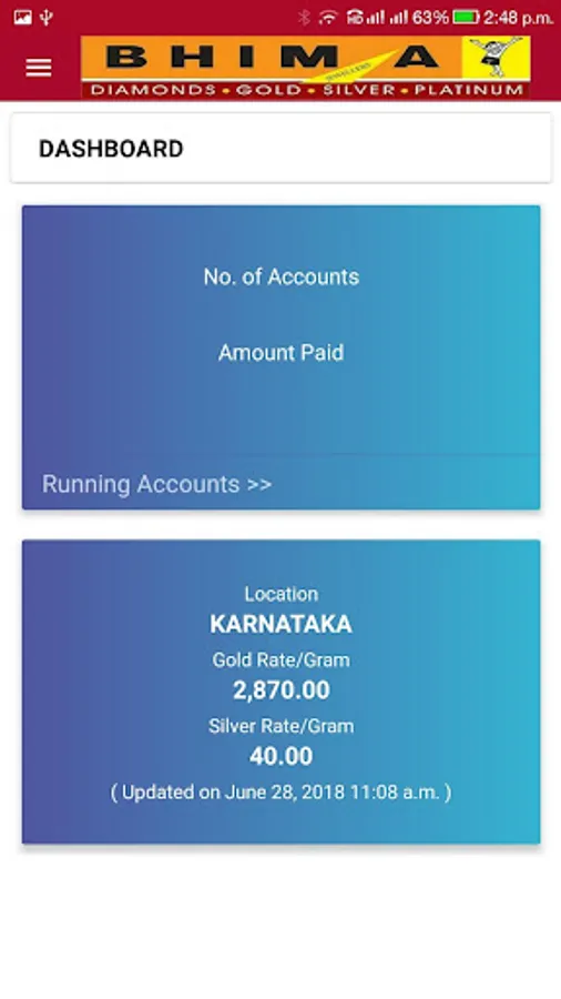 This application provides the information of Savings Scheme (Chit Accounts) to the Customers of Bhima Jewellers Bangalore. Customers would be able to see the Accounts Balance on their mobile.