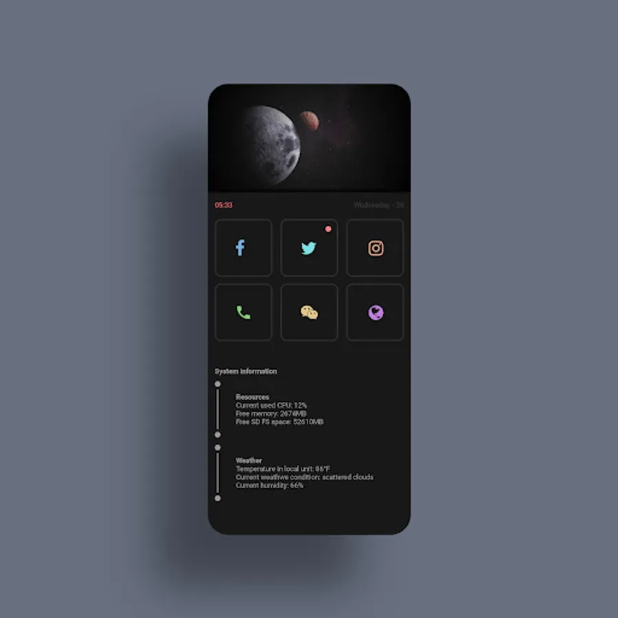 + Please follow the link below if you want to download my other free themes in: "Shared Theme Collection for Klwp Vol 1".