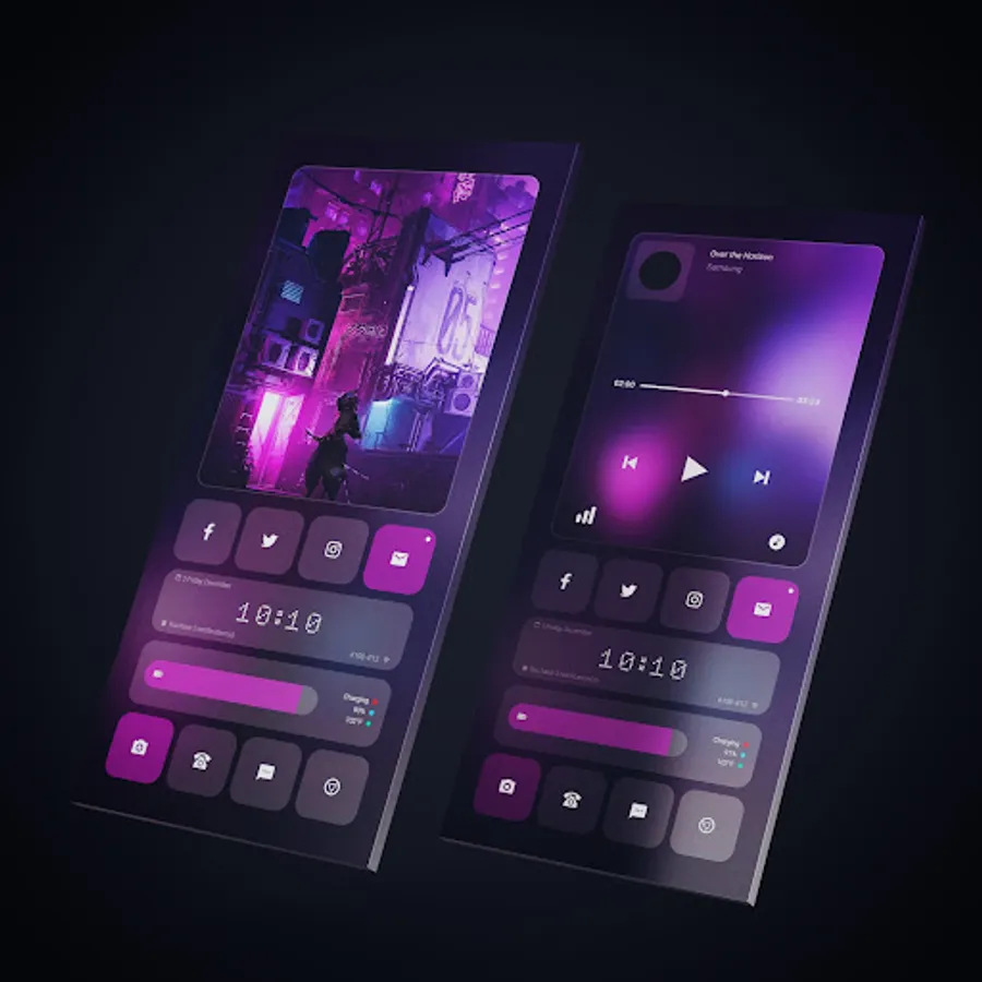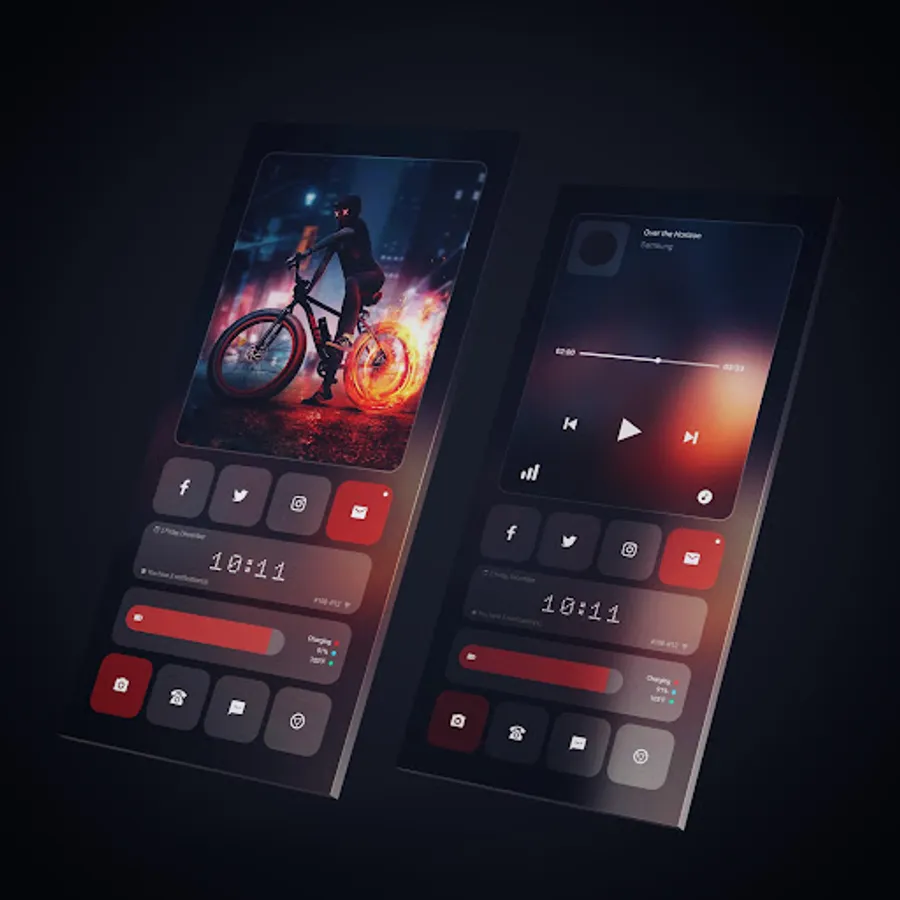 + The default Music Player used in all of my themes is Youtube Music. If you want to change it to your favorite app, please look for overlap group named such as: "Music-Touch to launch Music App".