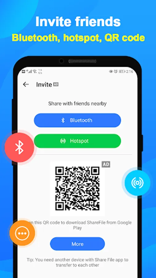 Now share files easily and fast with this share files app (file transfer app). Designed to provide a more convenient platform to transfer and share files, our Share App supports sharing the following types of files (photos, videos, music, documents, APK, contact) and support batch sharing.💯