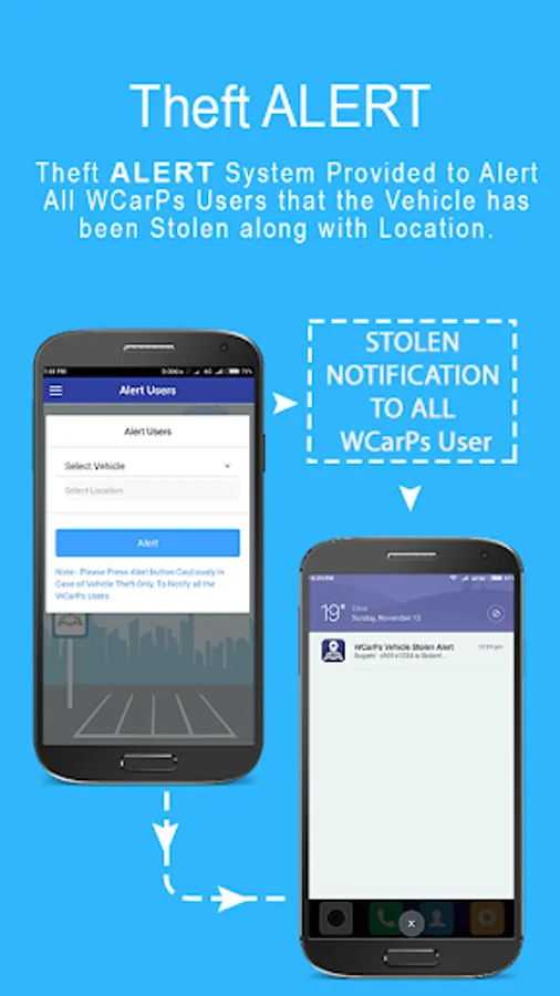 It Provided to Alert, All WCarPs Users About The Vehicle Theft along with The Location.