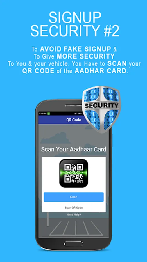 After the signup process, User has to scan QR Code of Aadhaar card for the first time Only to avoid fake registration.
