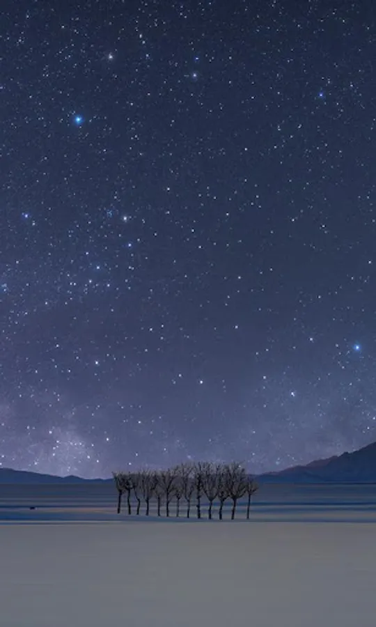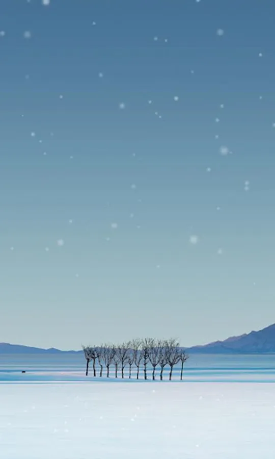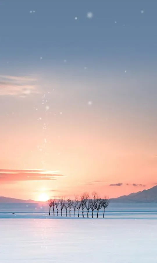 The haza trees that sprinkle the harvested rice endure the cold and watch the dancing snow.