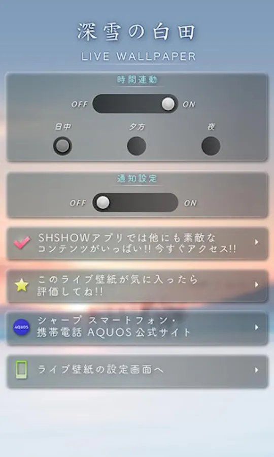 Free live wallpapers and email materials are provided by the Sharp smartphone official app "My AQUOS". You can enjoy it on terminals other than those made by Sharp.