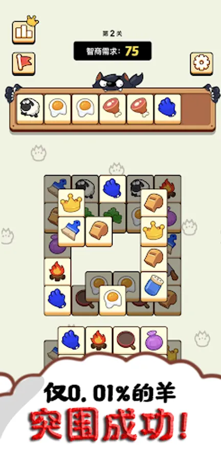In Sheep N Sheep, you match three blocks with the same symbol by clicking on them and placing them into slots. Once three blocks with the same symbol are paired, they will automatically disappear. The blocks come in multiple layers, so you can only eliminate the top layer before moving on to the next one. When there are no more blocks on the grass, you have successfully completed the level. However, be careful not to fill the slots with too many blocks, as the game will be over if the slots are completely full. Can you solve all the levels and emerge as a true puzzle master?