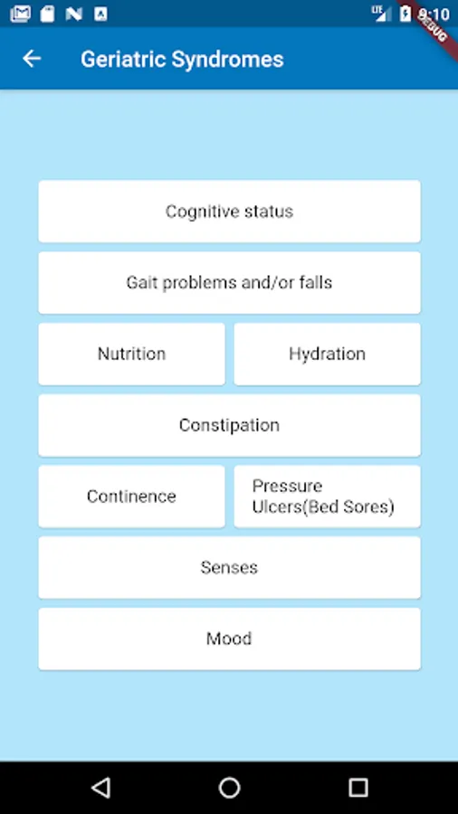 problems and falls, cognitive decline, weight loss, constipation, depression, sensory loss and