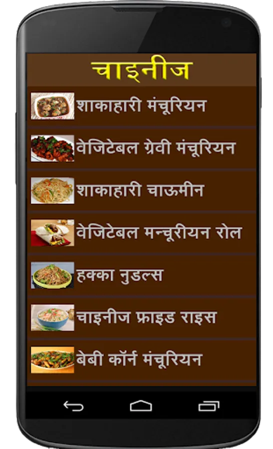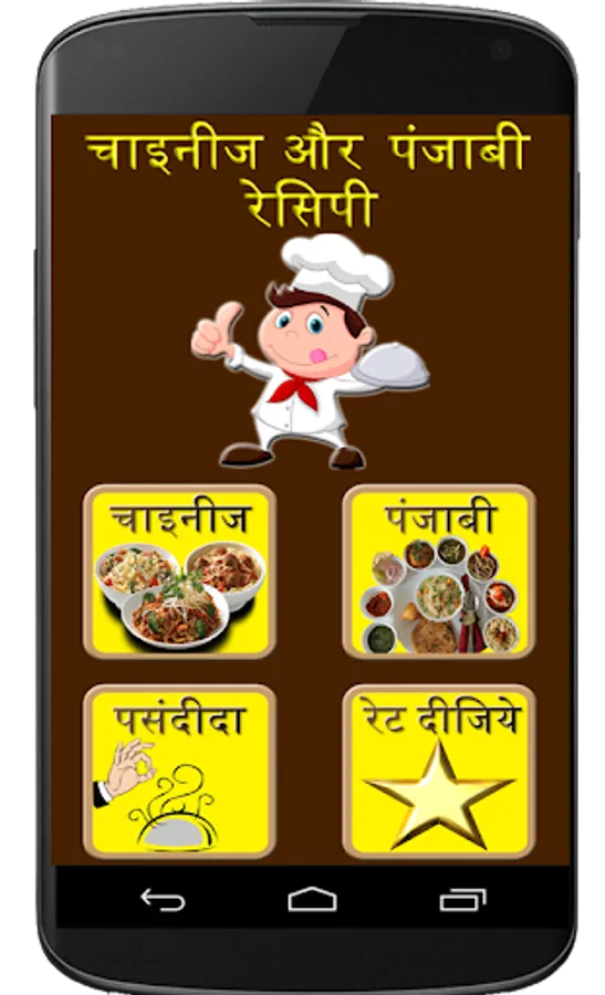 Chinese and Punjabi Recipe Application Describe different large Number of Recipes Varieties in Hindi Language.