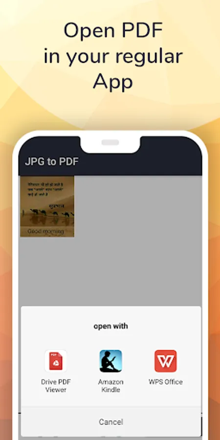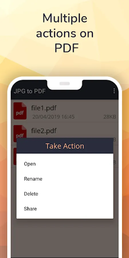 All generated PDF files are stored in "JPG_to_PDF Folder" (i.e /device storage/JPG_to_PDF/).